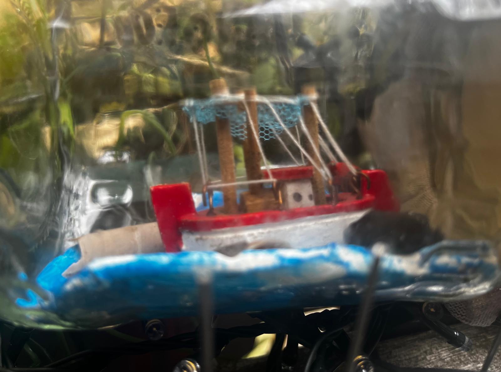 Auf dem Foto, das diesen Text begleitet, ist ein kleines Buddelschiff zu sehen.